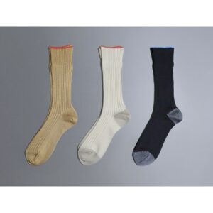 柄部分だけでなく履き口やかかとの色の組み合わせも美しいソックス。